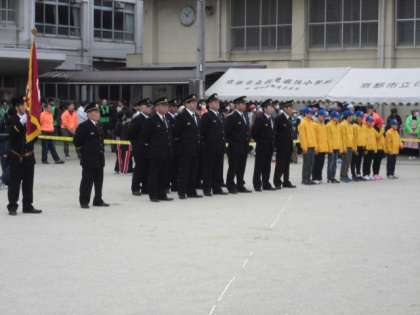 消防団の出初に、少年消防クラブのみんなも、参加してくれました。