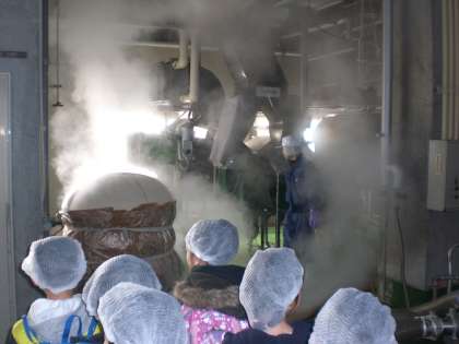 酒米を蒸す湯気がすごくて子どもたちが圧倒されていました。