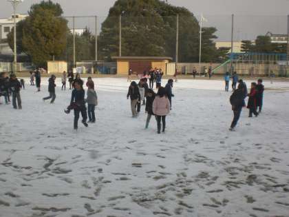 子どもたちが、運動場の雪を見てわくわくしているようでしたので、遊具以外で遊んでいいことにしました。