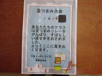1年 はじめての「豆つまみ大会」 〜給食週間〜