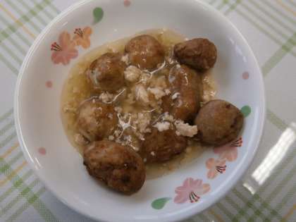 鶏ひき肉を良く炒め,かつおぶしで取っただしに薄口しょうゆ・みりんを加えて 片栗粉でとじてあんをつくります。