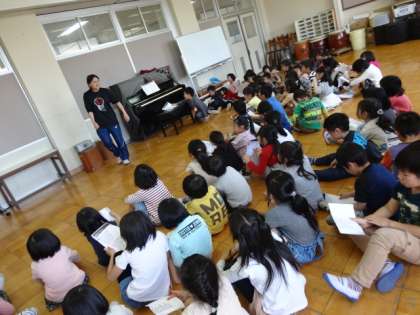 生活科や音楽科の授業では,一年生を迎える会で,お兄さんやお姉さんが自分たちをお祝いしてくれるので,お礼の歌を練習しています。