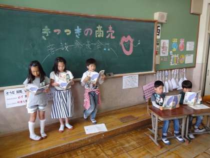 会話文とナレーション役を分けて読んでみたり,声をそろえて読んだり。