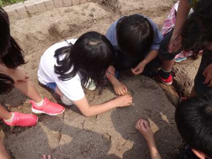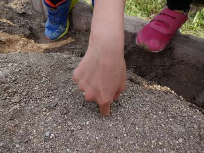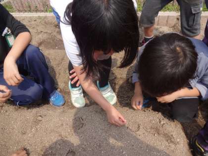 先日,観察したヒマワリとホウセンカの種を花壇に植えました。