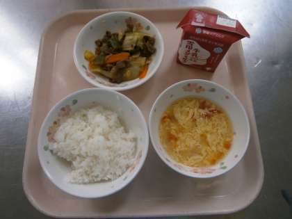「トマトとたまごのスープに入っているたまごがふわふわとしてて口の中でとけてしまいました。やきにくの中に入っていたおにくがやわらかかったです。いつもおいしいきゅうしょくをありがとうございます。」・・・2の1