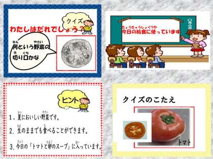 今日の野菜の切り口クイズも 各クラスで盛り上がりました。少しずつ楽しんで食育を進めたいと思います。