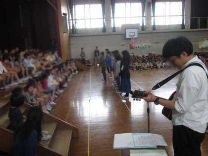 計画委員会の発表もありました。計画委員会担当者が作詞・作曲した歌を一年生にプレゼントします。ピアノの演奏も6年生がしてくれました。