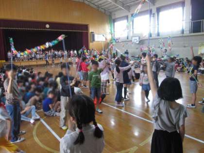 入退場時には,3〜6年生の学級の代表委員が花道を作ります。笑顔いっぱいの一年生を迎える会でした。