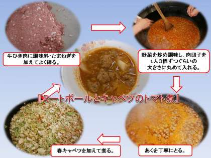 「ミートボールとキャベツのトマトにが一番おいしかったです。「また 食べたいな」と思いました。」・・・5の2