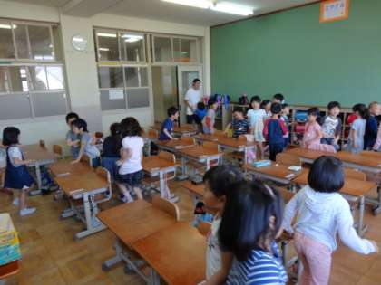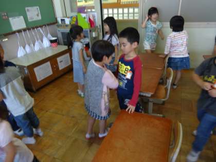 その後,音楽が流れているときに動き,止まった時に近くの人に自己紹介をするゲームをしました。