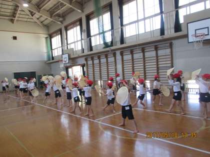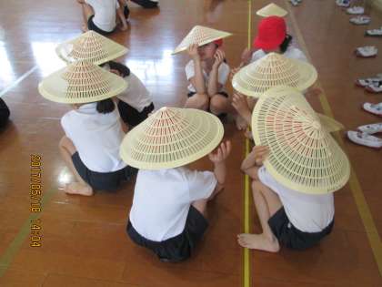 この日の 運動会練習は 体育館で行いました。