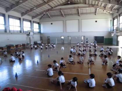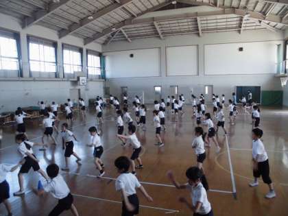運動会で踊る「風の舞〜疾風伝〜」の練習風景です。最初の頃よりもずいぶんと踊りに慣れてきました。来週からは,本格的に外で練習していきます。