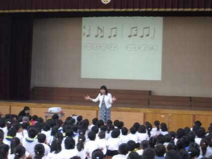 児童朝会の後に,今年度から始めたメロディータイムを行いました。学校長が中心となり,手足でリズムをとったり,「ビリーブ」を全校児童で歌ったりしました。