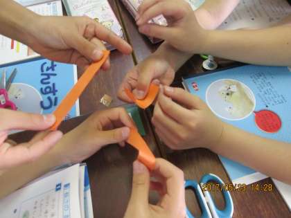 さらに,つくったテープの長さを友だちのものと比べます。