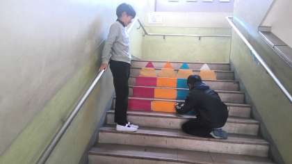 図画工作科では、「ここから見ると」(工作)に取り組んでいます。学校内の場所と奥行きをいかして楽しい「しかけ」を考えました。3時間で作り上げます。