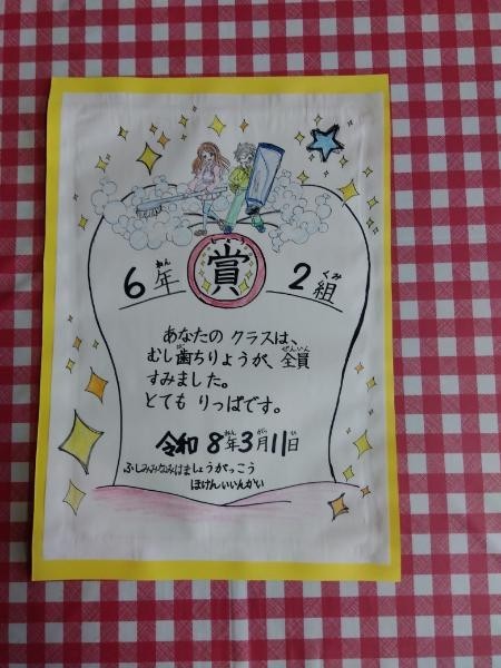 秋の歯科検診の結果、6年2組の要受診児童(むし歯・要注意乳歯)の治療が全員終了しました。
