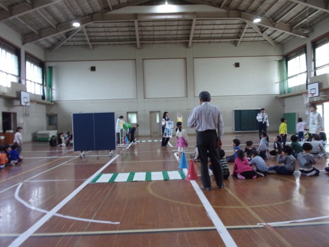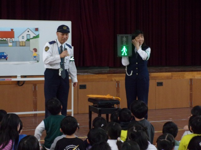 交通安全教室では、安全な登下校方法、横断歩道の渡り方など、丁寧に教えていただきました。