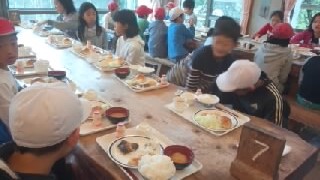 しっかり食べて今日の活動に備えます。スマイルポテトが人気です。