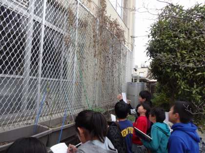 今日の4時間目の理科の学習では,『季節と生き物(冬)』の単元で,ツルレイシの様子を観察しました。春・夏・秋と,これまでの様子と比べて,変化したことをまとめました。