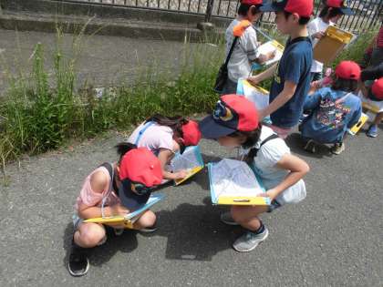 社会科の学習で校区探検に行きました。今回は校区の北側へ行ってきました。「家が多い」「お店がたくさんある」など記録しながら歩きました。国道24号線を歩道橋から見下ろしどのくらい車が通っているかも調べました。交通量が多いことにも気づいた子どもたちです。次回は校区のどの方角へ探検に行くか楽しみですね!