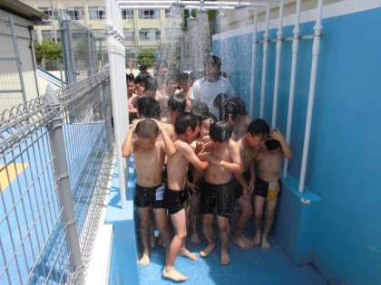 今日は朝からそわそわしていた子どもたち。「今日はプール入れるよね」「チェックカード持ってきたよ」など話題は水泳学習のことばかり。お天気の良い中,3年生が心待ちにしていた水泳学習が始まりました。まずは水慣れをして,少し泳ぐ練習をしました。伏し浮きやバタ足など昨年より上手になった子がたくさんいました。最後はどれぐらい泳げるか検定をしました。水泳学習が終わりの日には,今日の検定より少しでも長く泳げるようになっているといいですね。これから頑張って練習しましょう!