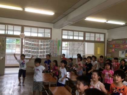 1年生も先週のチャレンジタイムの時間から,毎週水曜日だけ外国語活動をしています。初めて聞く歌や英語に,すごく興味をもっている様子でした。可愛い映像を見ながら,歌に合わせて英語を声に出したり,身体を動かしたりして楽しんでいます。子どもたちは「来週も楽しみ」「毎日やりたい」という声が出るほど,大喜びでした。これから,たくさんの英語の歌やダンスをしていきますので楽しみにしていてくださいね。