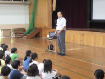 3日(火),7月の朝会を行いました。校長先生から,七夕やサッカーワールドカップなどの話を聞きました。画像を見せたり,クイズをしたりする内容で,子どもたちは興味津々です。
