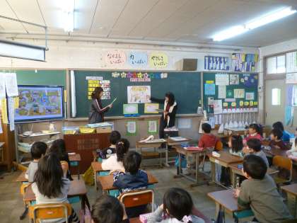 教師が演じた,「全部食べたい」あんずちゃんと,「選んで食べる」けんたくん。みんなは,その様子を見ながら,おやつをどのように食べればよいのか考えることができました。