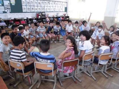 1組では「何でもバスケット」,2組では「ばくだん落とし」に決定。