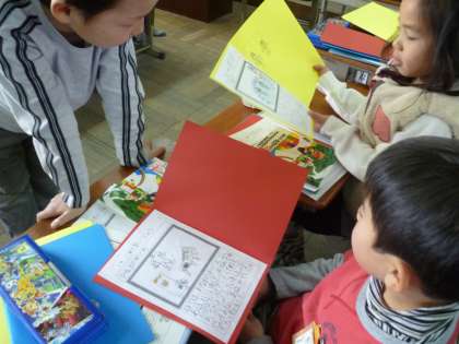 最後には,本にまとめる子と絵巻物にする子,パンフレットにする子など,自分で選んだ方法でまとめます。
