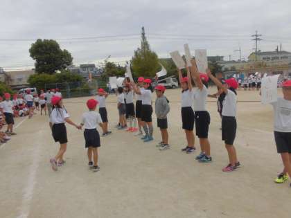10日(水),運動会のフレンドリー種目の練習を行いました。今年の種目は,「なかよし綱引き」と「ディフェンス玉入れ」です。フレンドリーグループの仲間と協力して競技に挑みます。また,フレンドリー種目では,競技以外にも4・5年生がカードを掲げたり6年生が1年生を連れて行ったりするなど活躍するところがたくさんあります。運動会当日は,勝敗だけでなく,そういったところも見ていただきたいと考えています。