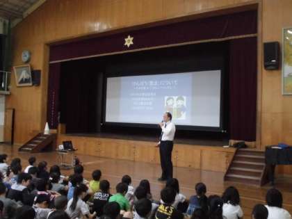 というまとめをしました。そして,こころとこころをつなぐことが大切であり,そのためにはあいさつをしっかりとしていきましょうと全校児童に呼びかけました。
