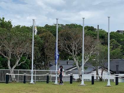 アカペラの校歌で校旗の掲揚。児童代表の誓いの言葉。完璧でした。