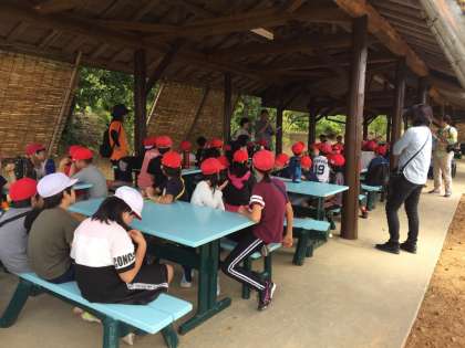ここは「東屋」。活動の拠点になったり,食事をしたりと頻繁に登場する場所です。