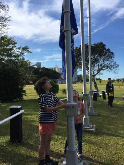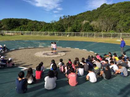 みさきの家2日目。今朝は伏見南浜小学校と合同で朝の集いを行いました。今日も良い天気です。