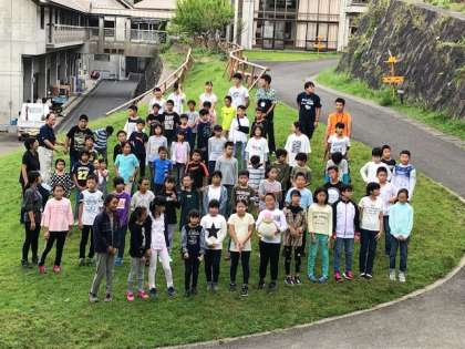 昼食後に本館前で集合写真を撮りました。みんな元気そうです。