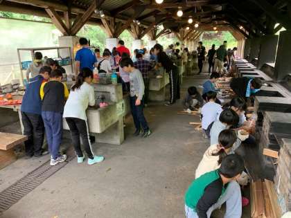 野外炊事がスタートしました。花背に来て2回目なので,手際よく進んでます。