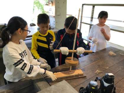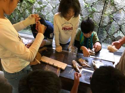 班で協力して 野外炊事で使う火を起こしました。