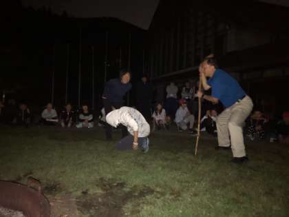 マイムマイムで盛り上がる子どたち。先生たちも盛り上がっています。