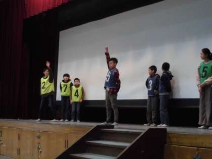 その後,保健体育委員会より新たな取組の紹介がありました。寒い日も外で元気に遊べるようにと委員会の子どもたちが工夫を凝らした遊びを考えました。今後,クラス単位でそれらの遊びに取り組みます。