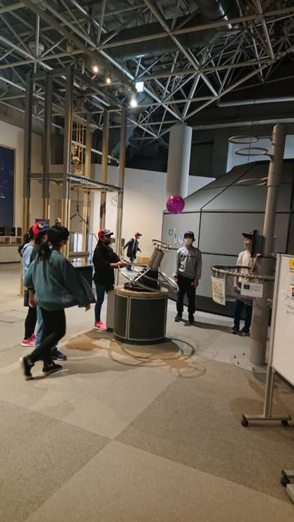 子ども科学館での様子です。「科学技術と自然環境の調和」を共通のテーマとして,「宇宙と地球」,「生命と環境」,「科学技術と人間」の3つの展示テーマで構成されています。