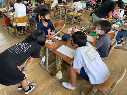 その後は自由にいろいろな友達の作品も見て周り,互いの作品の良さを見つけ合うことができました。