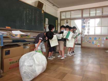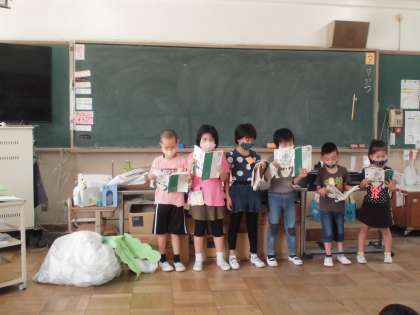 国語科では,「おおきなかぶ」の学習を進めてきました。最後にみんなで音読劇をしよう,というめあてをもち,どうやって読んだらいいか工夫しました。役になりきって読んだり,声の大きさを変えたり,動きをつけたりしてグループで練習をし,クラスで発表会をしました。初めての体験で難しいと感じた人もいましたが,一生懸命頑張る姿が素晴らしかったです。次は,リズムが楽しいおむすびころりんを音読していきます。今回よりもっと上手に読めるといいですね。