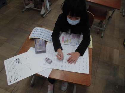 「どんな漢字やったっけ?」と言いながら,忘れた感じはドリルや教科書を使って調べながら頑張って取り組んでいました。