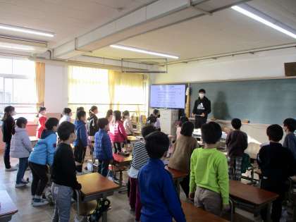 校長先生は,まず,2学期の振り返りとして,『9月の「人権月間」』,『10月の「スポーツフェスタ」』など,全校のみんなで取り組んだ成果について話されました。