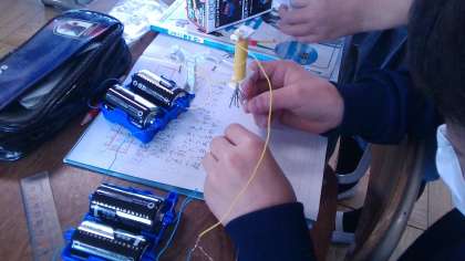 学習を通して,「コイルの巻き数をもっと多くしたらどうだろう?」「かん電池を,並列でつないでみると,コイルの威力はどうなるだろう?」など,様々な疑問を持っているようでした。