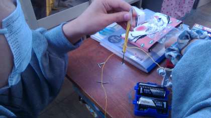 これまで,子ども達は鉄心に導線を巻いたコイルに電流を流すと電磁石となり,磁石と同じようなはたらきをする,ということを学習してきました。