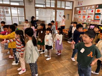 連休明けの月曜日、元気に学校に来てくれた1年生。月曜日の朝は、幼稚園の先生といろいろ遊べるからかもしれないですね。今日は、机を後ろへ下げて、【もうじゅうがり】ゲームをしました。生き物の文字数分、友達と集まってグループを作るゲームです。掛け声もあって大盛り上がり。「ライオン…4文字!」と大急ぎでみんなでグループを作っていました。また、みんなでしましょうね。
