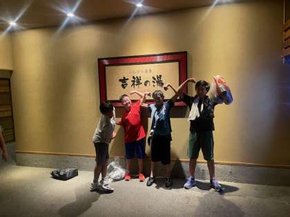 1日目はたくさん歩いたので、お風呂で疲れをとりました。子どもたちは「露天風呂最高!」とつぶやいていました!