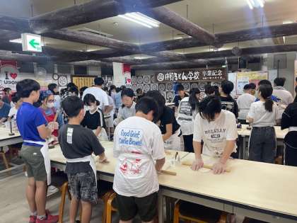 2日目の学習は、中野うどん学校「うどん作り」でスタートしました。こねたり、伸ばしたり、気持ちを込めて一生懸命作りました。作ったうどんは持ち帰ります。手作りうどんをお楽しみに!